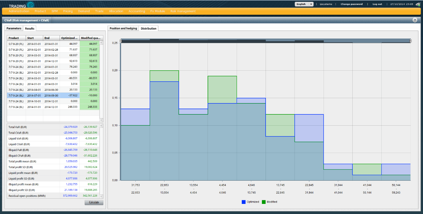 Two main parts of the project are related to operations research. The first module is the Price Risk Based Power Portfolio Optimization with Liquidity Constraints. The power portfolio consists of a procurement curve and several forward products. Our aim is to (re)hedge the portfolio in order to minimize its financial risk for a given time period (typically 10 working days).
