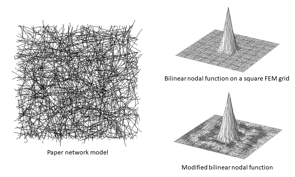 In my research, I currently work with the Local Orthogonal Decomposition (LOD) method. The method takes a finite element approach. Whereas a classical finite element method needs a sufficiently fine trial space to resolve the heterogeneities, the LOD method aims to find a coarse trial space (representations) that resolves the heterogeneous effects. This coarse trial space is found by taking a standard finite element trial space and adding orthogonal modifications to each nodal function, encoding the microscopic structure into the nodal functions. At this point, the use of the LOD method for network models is experimental. Still, numerical results indicate that the method works optimally for network models and the paper model particularly. Moving forward, we aim to develop the theory, investigate the possibilities, and understand the limitations of the LOD method for network-based models.